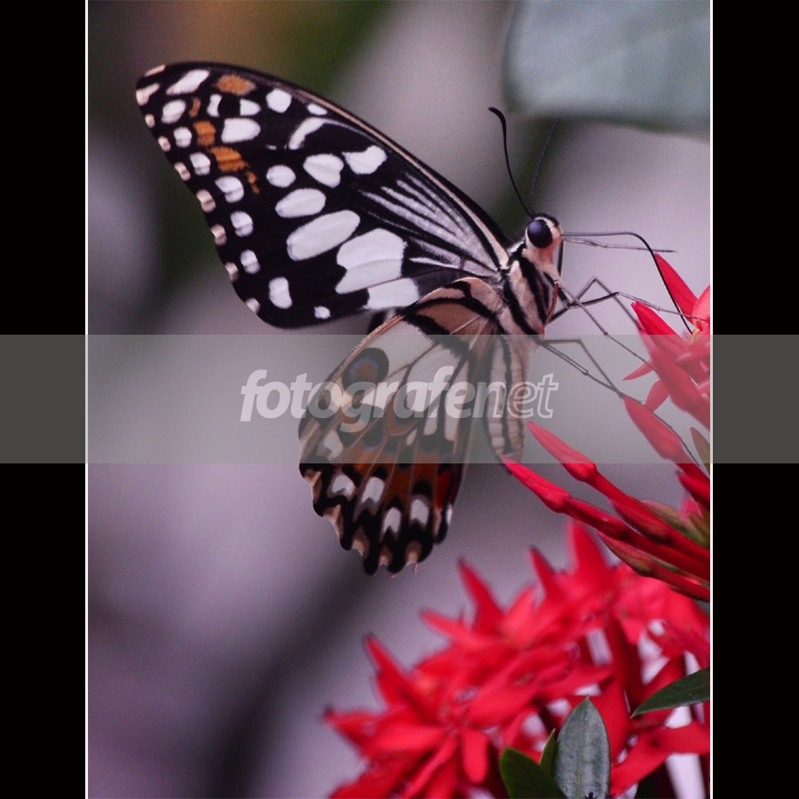 kombinasi warna antara bentangan sayap dan bunga warna merah disebelah kanan terlihat kontras....cuma BG seperti terlihat noise Mas Dwi, bisa dihaluskan lagi dgn masking dan gaussian blur...smoga berkenan, shs