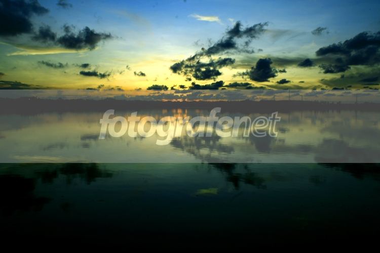 Refleksi siluet yang menawan diatas perairan waduk kota lhokseumawe