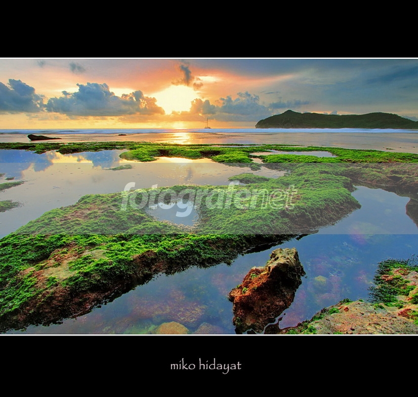 Tonenya bagus Om....kalau saya suka crop di bawah horison...supaya fokus di area lumut dan suasana dalam airnya,....hee2x