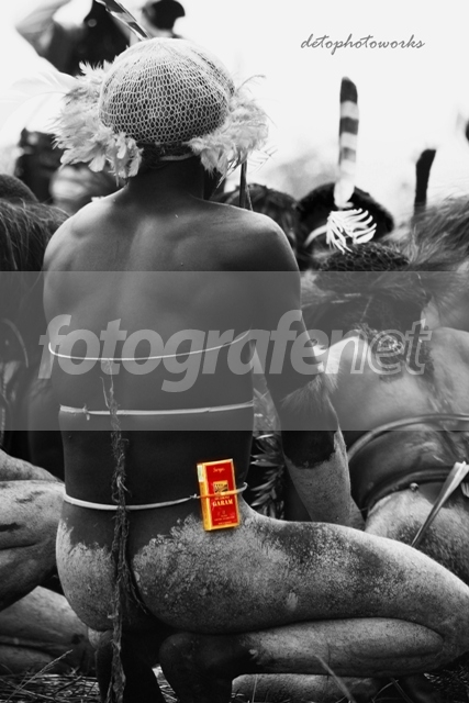 di ambil pada saat acara adat di wamena 2011, terlihat menarik karena hanya dia yang menyisipkan sebungkus rokok di pinggangnya..