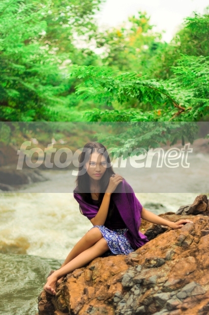 high anglenya mantap merekam model cantik dan imutnya di bebatuan pinggir kali.... sajian yang penuh keindahan adanya
