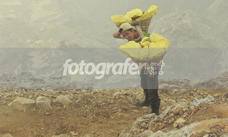 sulfur miner with his basket on his shoulder..