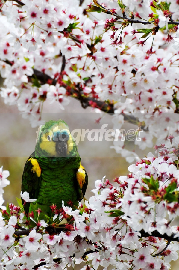 pada saat berkunjung ke Istana Osaka bulan April 2012, diantara rimbunan bunga sakura, mata langsung tertuju pada seekor Nuri (walaupun rada bingung kok ada Nuri di Jepang)yang warnanya cukup kontras dgn bunga sakura di sekitarnya. belakangan diketahui burung ini cukup jinak dan pemiliknya adalah pegawai di sekitar istana tsb. Semoga berkenan dgn foto saya ini ;)