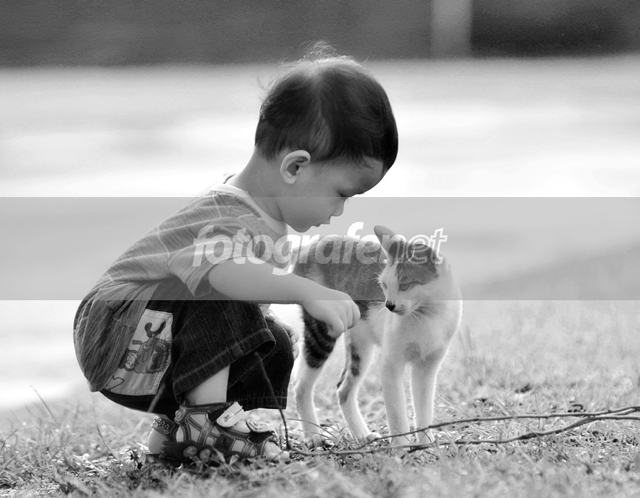 cakep BW si kecil main ma kucingnya n look natural n tinggal mnoisenya mbak di reduce lagi