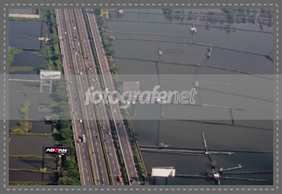 Gambar diambil dari atas pesawat penerbangan dari Jogja menuju Jakarta saat akan landing, posisi berada di atas jalan toll Sedyatmo