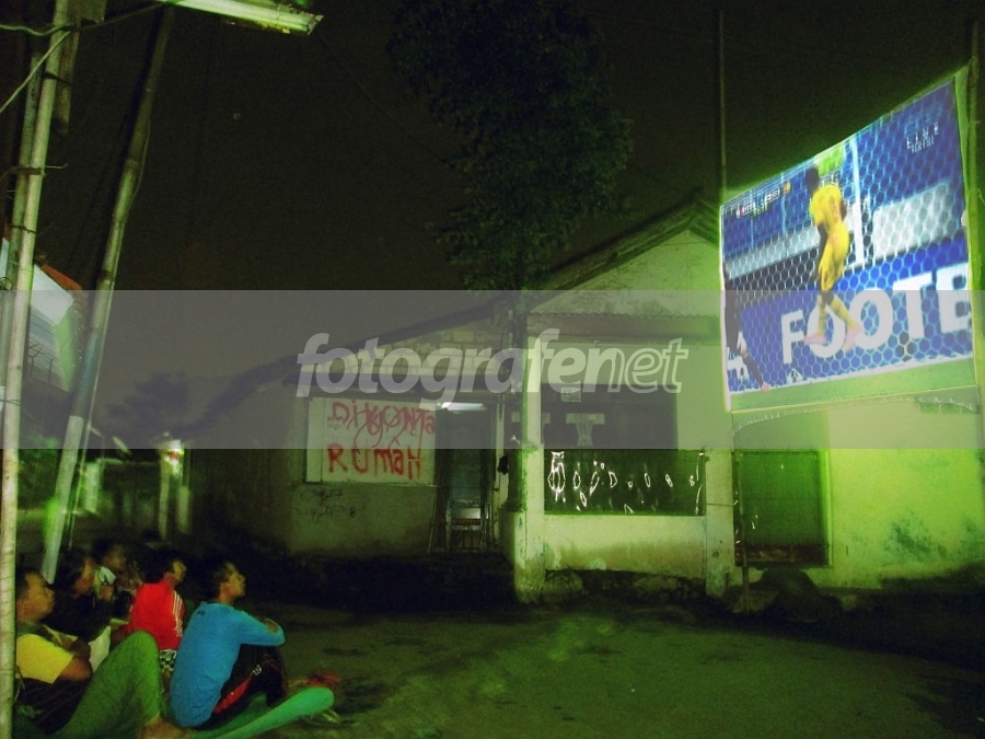 Asyiknya kalau menonton sepak bola dunia depan pos kamling, bisa bebas teriak-teriak biar udara malam di luar sedikit semriwing sing penting happy..