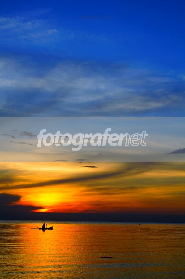 Nelayan pulang sehabis menjala ikan ditemani indahnya sunset dari pulau moyo