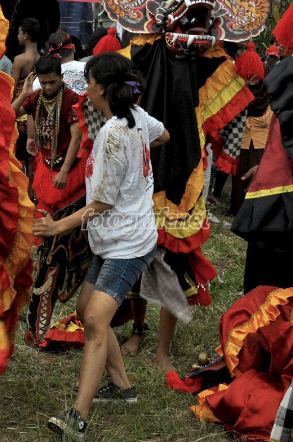 Remaja wanita yang sedang trance saat pertunjukan jaranan.