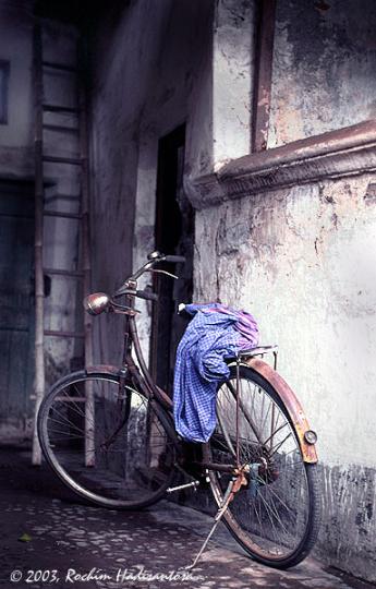 sarung biru pada sepeda tua