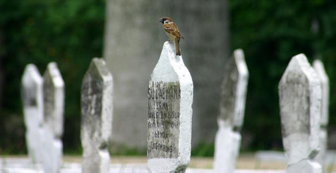 burung gereja di nisan seorang serma
