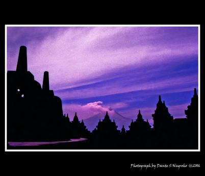Borobudur Temple in misty morning