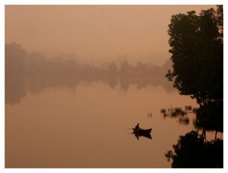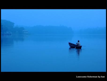 Lonesome Fisherman in Lake