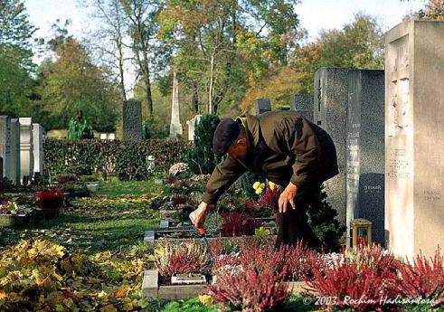 Membersihkan makam istri tercinta