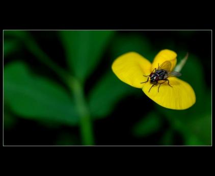 an ugly fly on the beautiful yellow flower