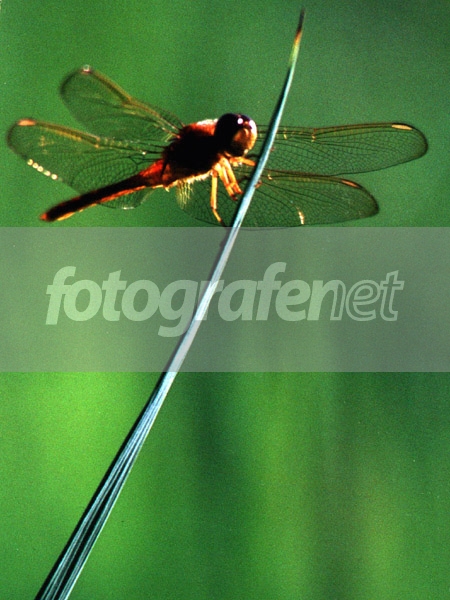 Makro yang cantik itu harus banyak detail dan tekstur. Momennya bagus sekali dengan daun silang. Dan dia tidak terbang. Disini harus memakai cahaya bantu untuk menampilkan tekstur di bagian bawah capung. Kok grainy, terlalu banyak pembesarankah?.
