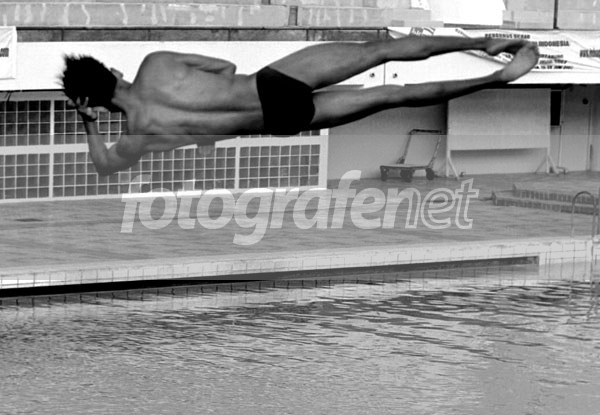 salah seorang atlet kejurnas loncat indah meloncat dari papan satu meter