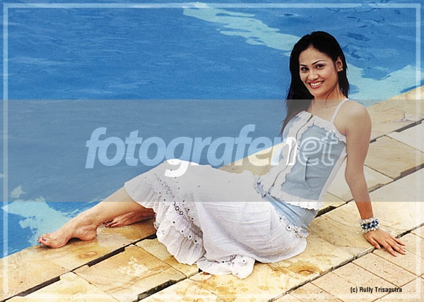 Bagus..komposisi miring tepian kolam menunjang.Eh,kalo model pake bikini...sesuai dengan lingkungan kolam renang...