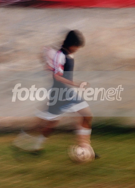 Foto panning yg sekilas tampak "gagal" ini saya up-load terutama untuk membandingkan dng foto panning Mas Ichsan di halaman muka hari ini (The Motorcycle) yg juga diambil dng 1/20 detik. (Saya pribadi suka efek blur pemain bola ini yg begitu dinamis...). Pemain bola tsb berlari dng kecepatan sekitar 20 km/jam, sedangkan motor Harley yg difoto Ichsan paling tidak 70 s/d 100 km/jam. Teorinya, semakin cepat obyek yg difoto, kec. rana untuk panning harus semakin tinggi agar obyek bisa freeze.
