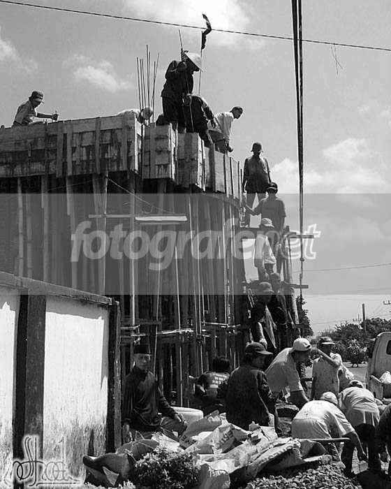 Terlalu rame deh spt nya. Gimana kalau org yg bertingkat diambil dgn format vertikal selagi mengayunkan ember semen cor? Atau org-org di lantai dua yg lagi berderet dgn format horizontal pas lagi ngasih ember semen cor. Sekedar ide ajah.