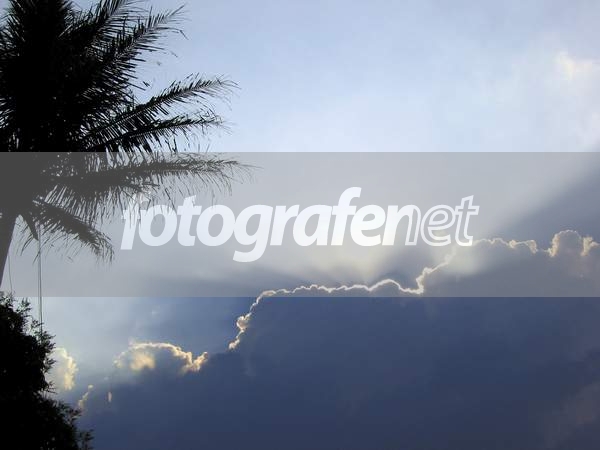 Garis perak sepanjang tepi awan sangat bagus. Daun pohon kelapa (yang dimakan hama) terlalu banyak dan terasa mengurangi keindahan foto ini.