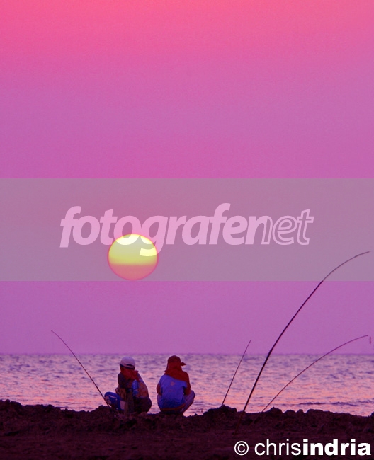 kalau pemancing bersama-sama seperti ini adalah romantis tapi kalau dua sejoli yang lagi menjalin asmara adalah ngambek. komposisi dan sudut pengambilan yang cantik dimana posisi pemancing dibawah horison dan matahari diatas horison