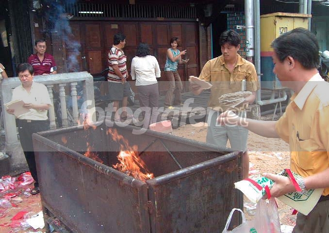 Foto diambil ketika warga Tionghoa sedang membakari uang kertas (mainan) dan kertas sembahyang pada peringatan akbar kedua pada tanggal (12-0803) atau menurut tanggalan China Tanggal 15 Juli. Menurut budaya dan kepercayaan mereka, sembahyang hantu dilakukan setiap setahun sekali untuk menghormati pihak keluarga yang telah meninggal dan mereka anggap tidak punya rumah dan tidak punya uang lagi. Jadi, uang kertas mainan yang dibakar tersebut adalah sebagai bekal mereka.