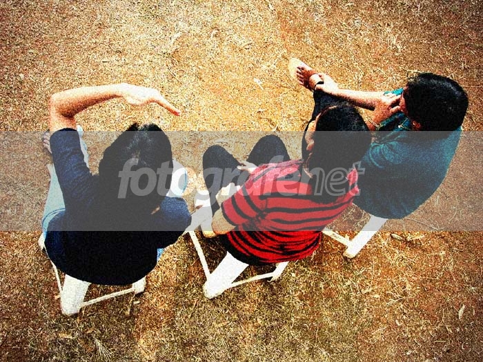Tiga orang ibu sedang nonton panjat pinang menghadap ke barat pada sore hari sekitar jam 16.00. Dipotret dari atas pohon duren. Manjat dulu nih! Diberi noise dikit, biar rada artistik...