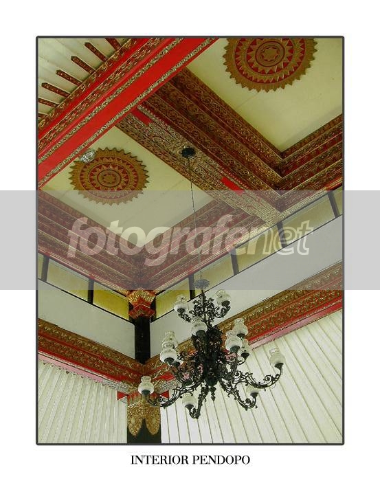 Hal yang menarik dari pendopo yogyakarta adalah struktur rusuknya yang bersifat tumpang sari dengan pahatan yang detil dan berkesan mewah, didominasi oleh warna merah keemasan serta dilengkapi dengan lampu gantung klasik. Dua ornamen bulat yang berada di atap merupakan lambang kerajaan yang hanya boleh digunakan pada bangunan kerajaan atau pejabat kerajaan. Masyarakat biasa akan dianggap lancang apabila membangun pendopo dengan ornamen kerajaan.