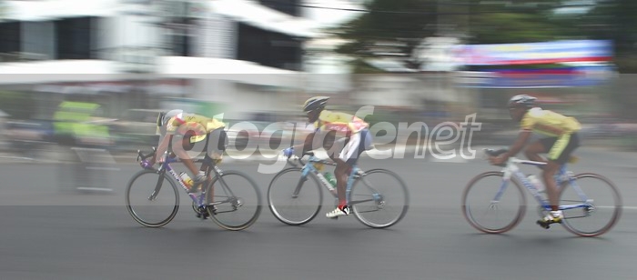 Saat memasuki kota Malang pada Etape Terakhir Tour d'ISSI-Java 2003, tiga pembalap berada di depan. Foto diambil 45 menit sebelum upload. Foto diambil di pertigaan jln Sarangan-Mitra 2