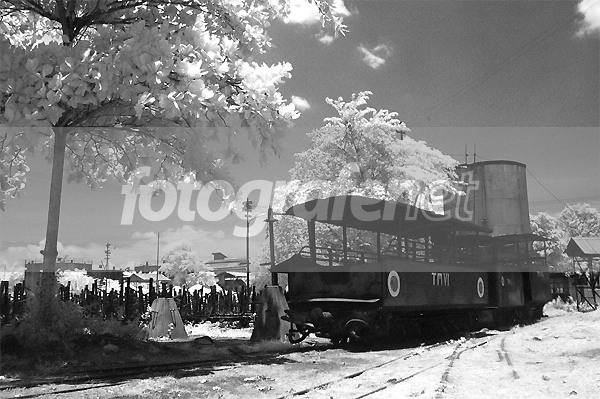 Lori tebu di salah satu sudut Pabrik Gula Tasikmadu, Karanganyar, Jawa TengahrnrnDibuat IR dengan filter Ilford SFX