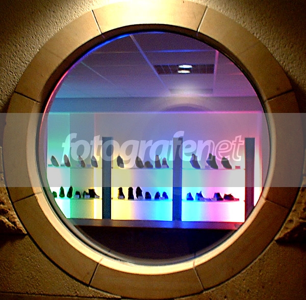 Dengan judul "O" Anda bebas menafsirkan sebagai huruf atau angka. Ini adalah jendela bulat sebuah toko sepatu ortopedi, di dekat rumah sakit Raphaelsklinik, Muenster. Ketika isteri saya melahirkan di rumah sakit ini saya masih sempat juga mengamati pemandangan unik ini. Saya tertarik dengan penyinaran etalase yang berwarna-warni dan setelah saya potret ada semacam bayangan bulat di BG. Barisan sepatu di belakang tentu tidak bisa tajam, krn fokus otomatis terarah pada frame bulat di FG. Penyinaran di FG adalah lampu neon di atas bagian tengah. PS hanya crop di resize, warna original. Atas saran dan komentarnya terimakasih banyak.