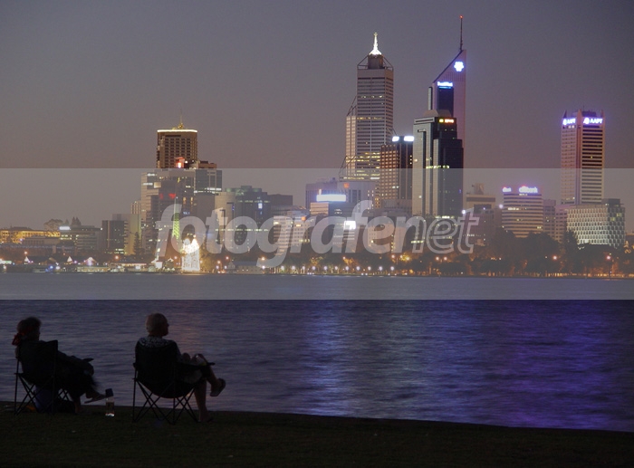 langitnya bagus. cahaya dari gedung-gedung cantik sekali. airnya juga bagus. Ditambah siluet sepasang manusia.. bagus banget!