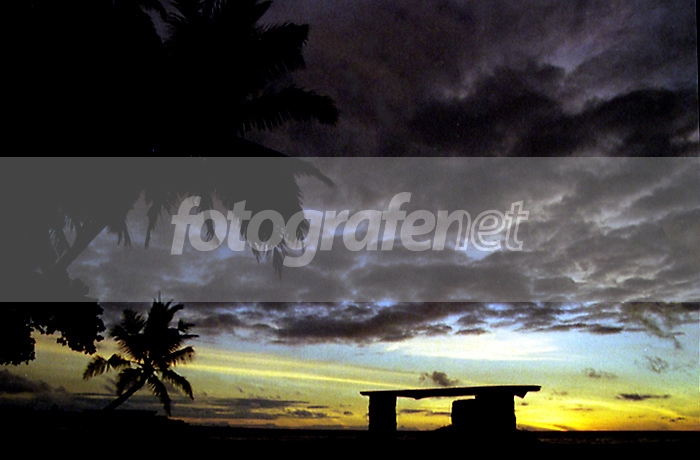 kesan pertama: warna hitam terlalu mendominasi foto ini, siluet kelapa hitam, awan hitam .... padahal senja identik dengan warna/i yang indah .... imho