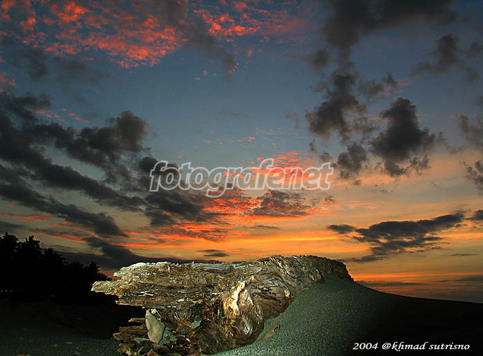 Komposisi yang OK Object kayu-nya tajam bener... Proporsional banget ama sunset-nya... Sukses Pak!