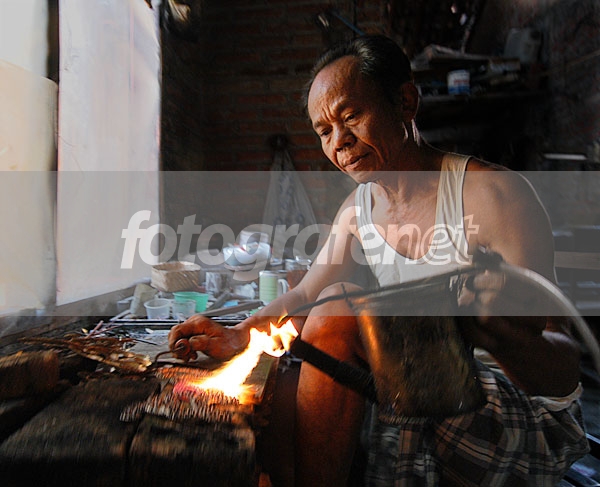 Momen = pas banget, melakukan aktifitas. komposisi = kurang sreg pd bagian putih di kiri. POI = pengrajin yang tajam, dg perak yang sedikit blur. sedikit shaky pd bagian depan. Lighting = oke banget dg mengandalkan available light dari samping.