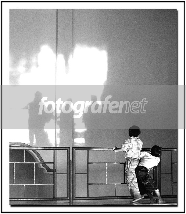 Komposisi yang menarik, dua anak dengan bayangan di dinding mendiagonal.
