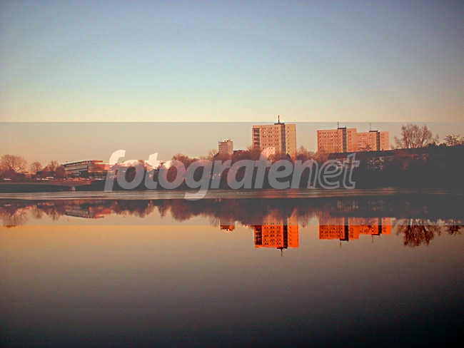 Wah.. refleksinya sangat sempurna... seperti cermin nih danaunya.. tanpa ada riak air sedikitpun.. Kayaknya bagus juga di focusin di gedungnya saja..