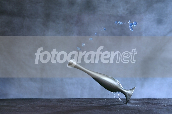 Gambar foto saya yg. pertama disini!rnCara pembikinan foto ini:rn2 flash digunakan dlm. projek ini. Digabung dengan cahaya suria dari tingkap. Flash pertama dihala ke bumbung dan satu lagi di jam 2:30rnPembantu saya menolak pasoh itu dan saya menekan shutter pada saat yg. tepat sekali.rnAir diisi dengan penuh dalam pewter dan di dye dengan perwarna biru.