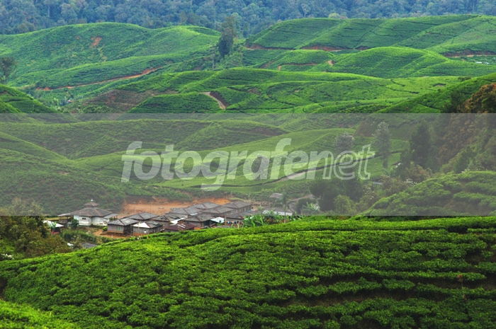 Warna perkebunan teh yang hijau royo terlihat kontras dengan perkampungannya... atau terbalik.. cakep pak Goen
