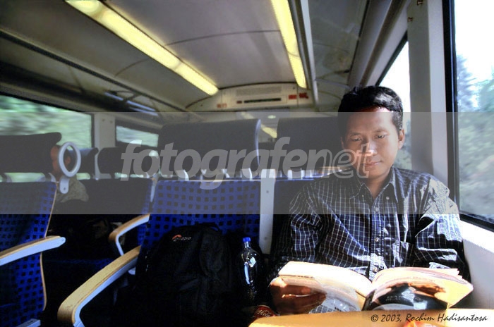 Maaf kalau judulnya lugu sekali :DrnDi atas kereta Regional Ekspress dr Muenchen menuju Frankfurt, di lantai 2 (kereta bertingkat). Metering, setelan apertur-speed, angle dll saya sendiri yang setting, release eksposur oleh Dian, kawan perjalananku.