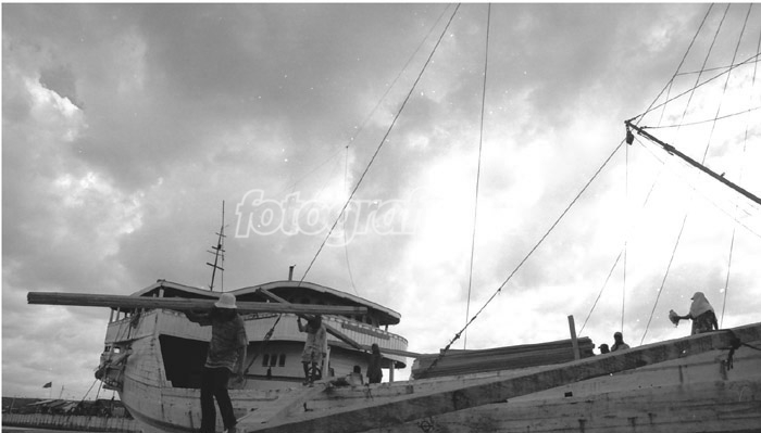 pelabuhan sunda kelapa Jakarta kota, disiang hari nan terik. panas menyengat seolah tak menyurutkan semangatnya.