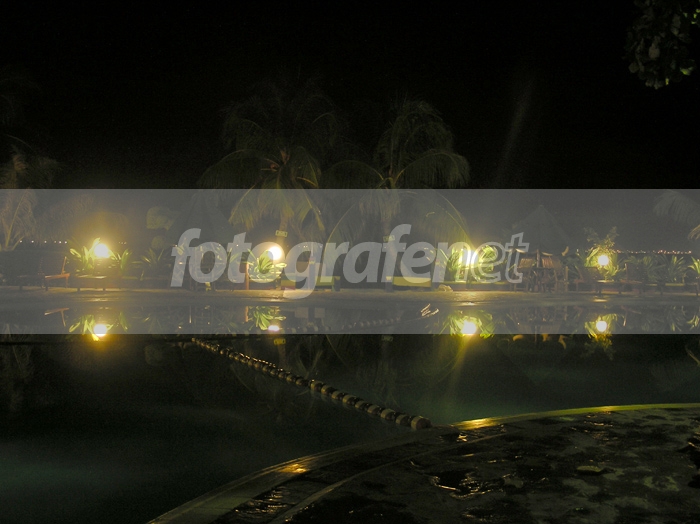 Kalo motretnya agak sorean dikit gimana ? Saat langit udah mulai gelap tapi lampu kolam renang udah dinyalain, pasti lebih keren lagi deh jadi detil daun kelapa yang di atas gak tenggelam dengan gelapnya langit. Diafragma diset angkanya paling gede aja yang ada di Olympus 750. Semoga berkenan.