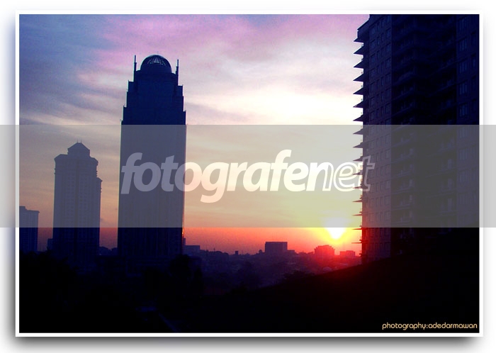 Yang kemarin foto hari Minggu Sunrise Room 1004 Kali ini saya upload yang Versi Sunset masih dari kamar 572 Hotel Sahid Jaya. Karena keterbatasan tempat dan ruang (dari jendela hotel), hasilnya apa adanya. Gedung di sebelah kanan Apartemen Hotel Sahid. Gedung di tengah aku belum tahu namanya (Ada yang tahu?)Cara membuat frame dan kurang lebih pengolahan PS 7.00 sama dengan kemarin.Date Time Original: Hari Sabtu 2004:05:08 17:37:13. Thanks to Anto Tropik (For Kamar dan Kamera)rn