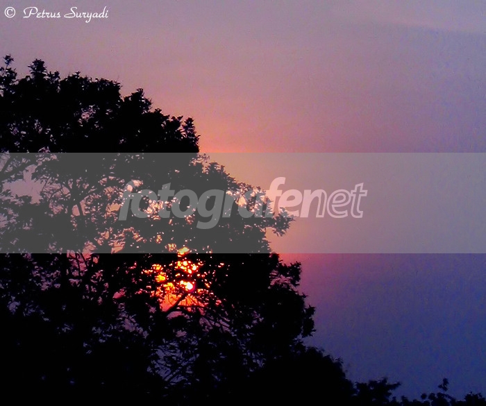 Matahari dibalik pohon yang warnanya masih merah.... Thanks kritik & Sarannya....