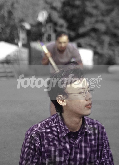 Idenya top, walopun pilihan senjatanya sadis banget :p (yang saya tahu adalah kapak dari foto2 sebelumnya, karena di foto ini sendiri kurang keliatan jelas kalo itu adalah kapak) Komposisinya..uhm..ada yang kurang mantap tapi apa yaa..mungkin sebaiknya si pembunuh tidak persis di belakang si victim, jadi keliatan lebih utuh, lebih keliatan mengendap-endapnya. Just a thought... ^_^