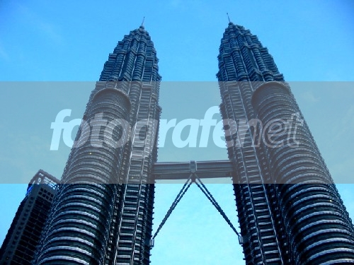 Gedung Petronas diambil dari bawah. Resize, cropping, contrast pake PS.