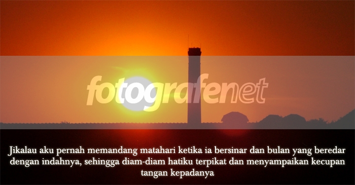 tulisan puisi sangat mengganggu menurutku....trus komposisi misal matahari sebelah kiri dan menara sebelah kanan pasti lebih bagus dech karena foto ini berat sebelah kanan....IMHO lho,salam kenal....