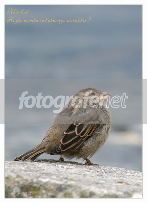 Rindu yang mendalam kepada orang yang disayangi, Hingga berharap, angin akan membawa kabar mengenai dia untuk ku.Dedicated untuk semua insan manusia yang sedang merindu hihihirnLagi kumat pengen puitis, abisnya si burung lagi nengok ke langit kayak lagi berharap sesuatu dari atas. ISO Speed Ratings: 400, Focal Length 300mm, Partial Metering, AF Servo, WB Sunny, No Flash. Difoto jam 6:12 sore hari awal musim gugur. Mohon keripiknya ya wan-kawan.