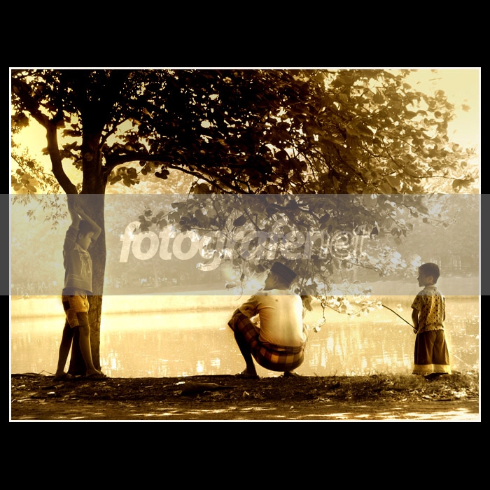 Si kakek sedang merokok? btw celana anak yang di kanan kedodoran tuh.