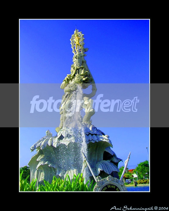 Wah lagi di Bali nih? Bagus banget warna biru dan hijaunya. Gambarnya juga tajam. Anglenya kurang rendah Mbak, label patungnya terpotong, dan detail patung kurang terlihat, kesiangan ya motretnya...:) imho lhooo... Kalau dibuat siluet bagus nggak ya...?